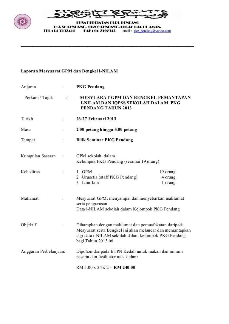1 Laporan Mesyuarat Gpm Dan Bengkel I Nilam Dan Iq Pss 2012 1